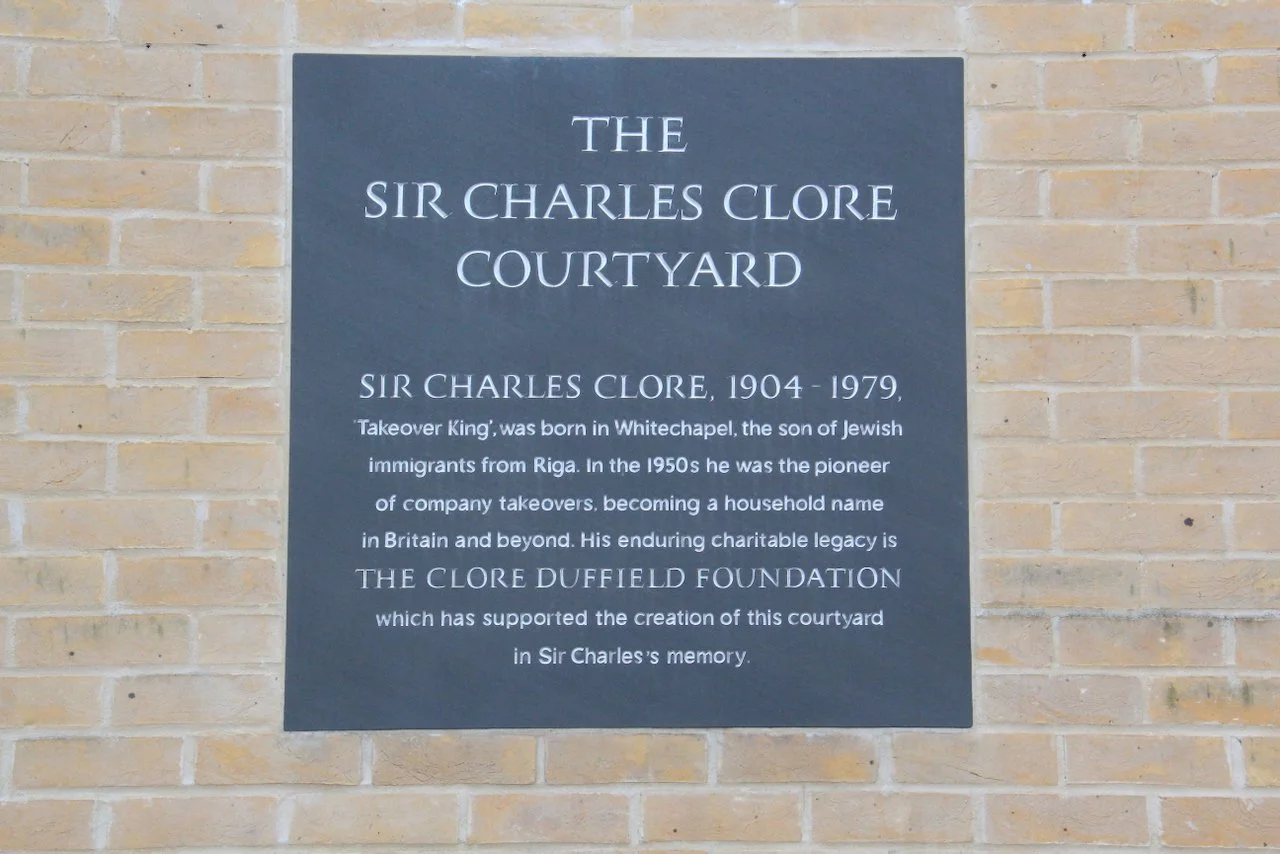 Slate opening stone and Clore memorial - “Dual text” slates, using the Roman inspired capital letter with serifs (nicknamed Dutch Caps) also used on the large inscription, combined with a simple sans serif one. Carved and silver gilded slate inscriptions. 2002