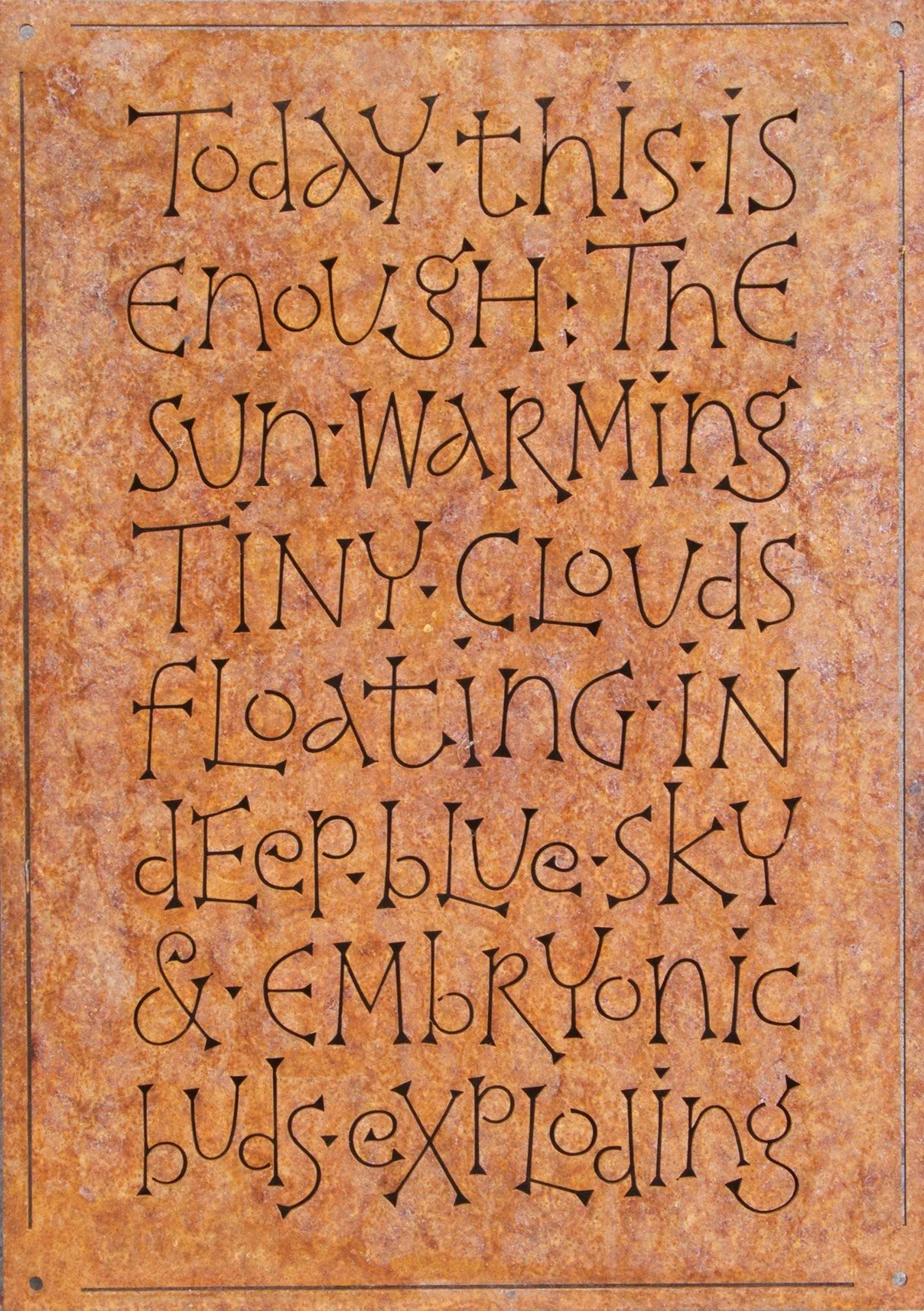 Letter Exchange travelling exhibition started at the Lettering Arts Centre in Snape in July 2015. ‘Artist’s Spring’ corten steel.